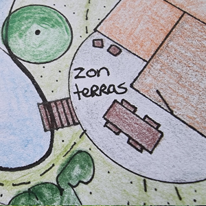 Eventueel maak ik bij de schetsontwerpen een 3D visualisatie. Het kan lastig zijn om een schetsontwerp te beoordelen, omdat het een plattegrond is. En een tuin is natuurlijk 3D. Een mogelijkheid is dat ik een perspectief tekening maak of een 3D model waar je doorheen kan ‘lopen’. Dit helpt om de hoogte en het gevoel van de tuin te beoordelen.