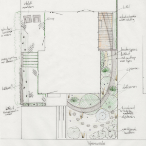 Als het je niet leuk lijkt, dan kan ik je helpen. Het liefst zou ik Artificial Intelligence aanraden zodat iedereen zijn eigen tuin kan ontwerpen, maar helaas kan dat nog niet. (Hoe vet zou dat zijn? Gewoon alle randvoorwaarden invoeren en dan kiezen uit de leukste opties). Dus ik help je graag om jouw ideale tuin te maken. Hieronder beschrijf ik hoe mijn ontwerpproces er ongeveer uitziet.
